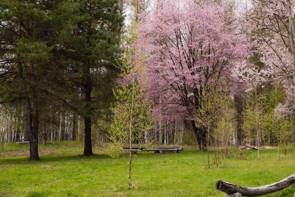 ノルハイムの森にある中央の広場の蝦夷山桜の開花。