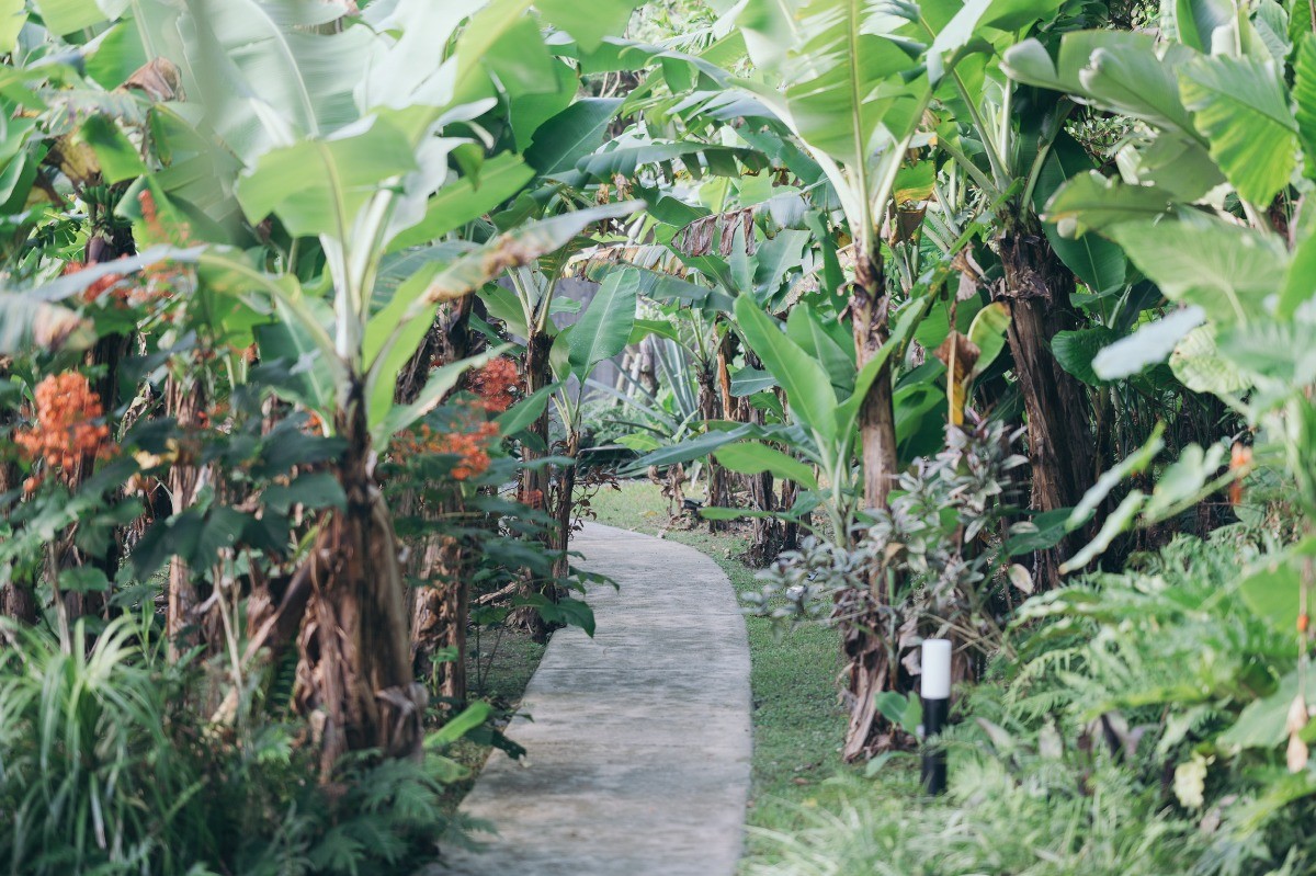 バナナの木が迎えるエントランス