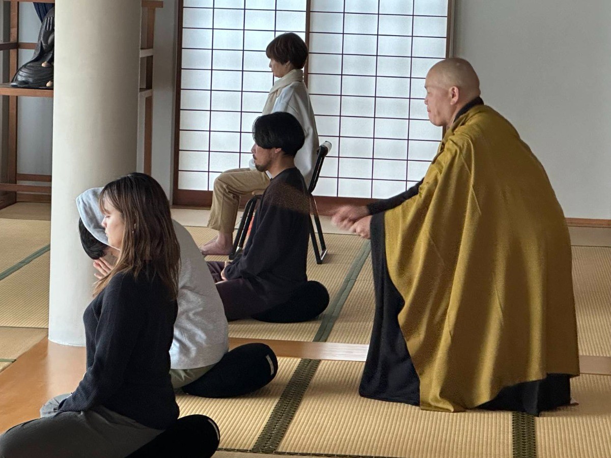 滝行での「動」の修行に対し、座禅という「静」の修行で三日間を締めくくります。