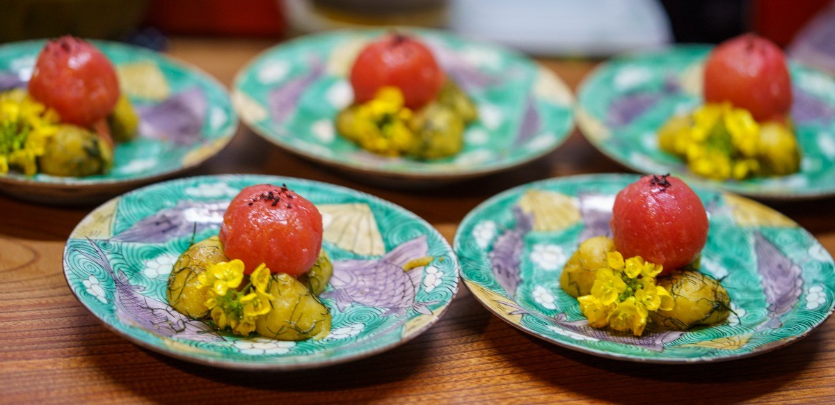 the meal will be served on authentic -mostly antique- Japanese ceramics & urushi-laquerware from Wajima.