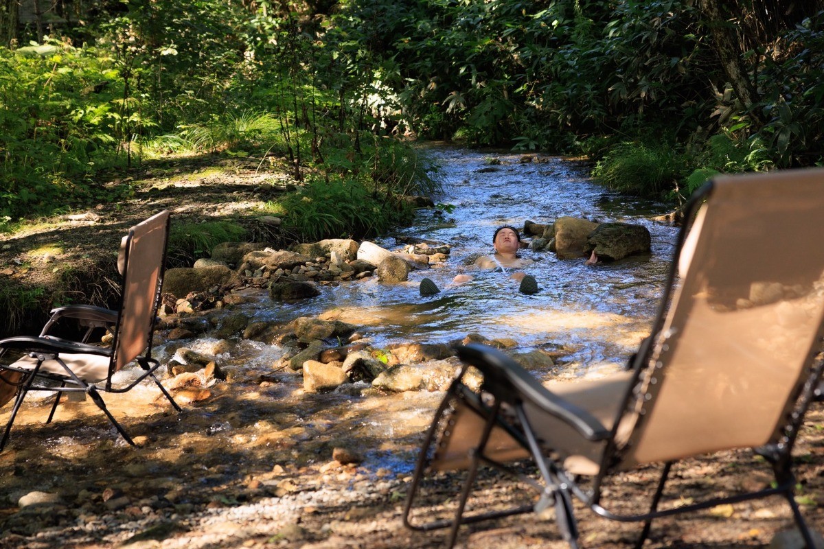 天然水風呂の川が気持ちいい