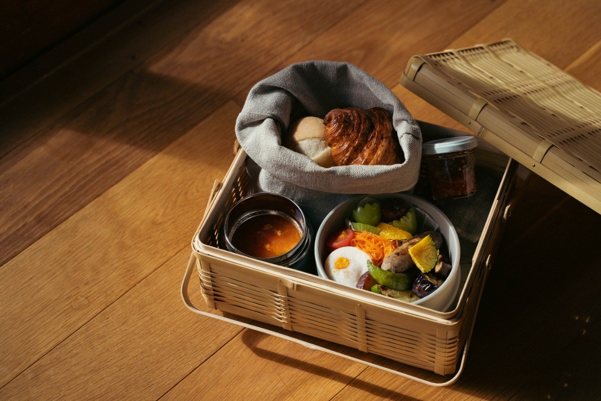 朝ごはんは作りたてをバスケットに入れ、お部屋の玄関口にお届けします。