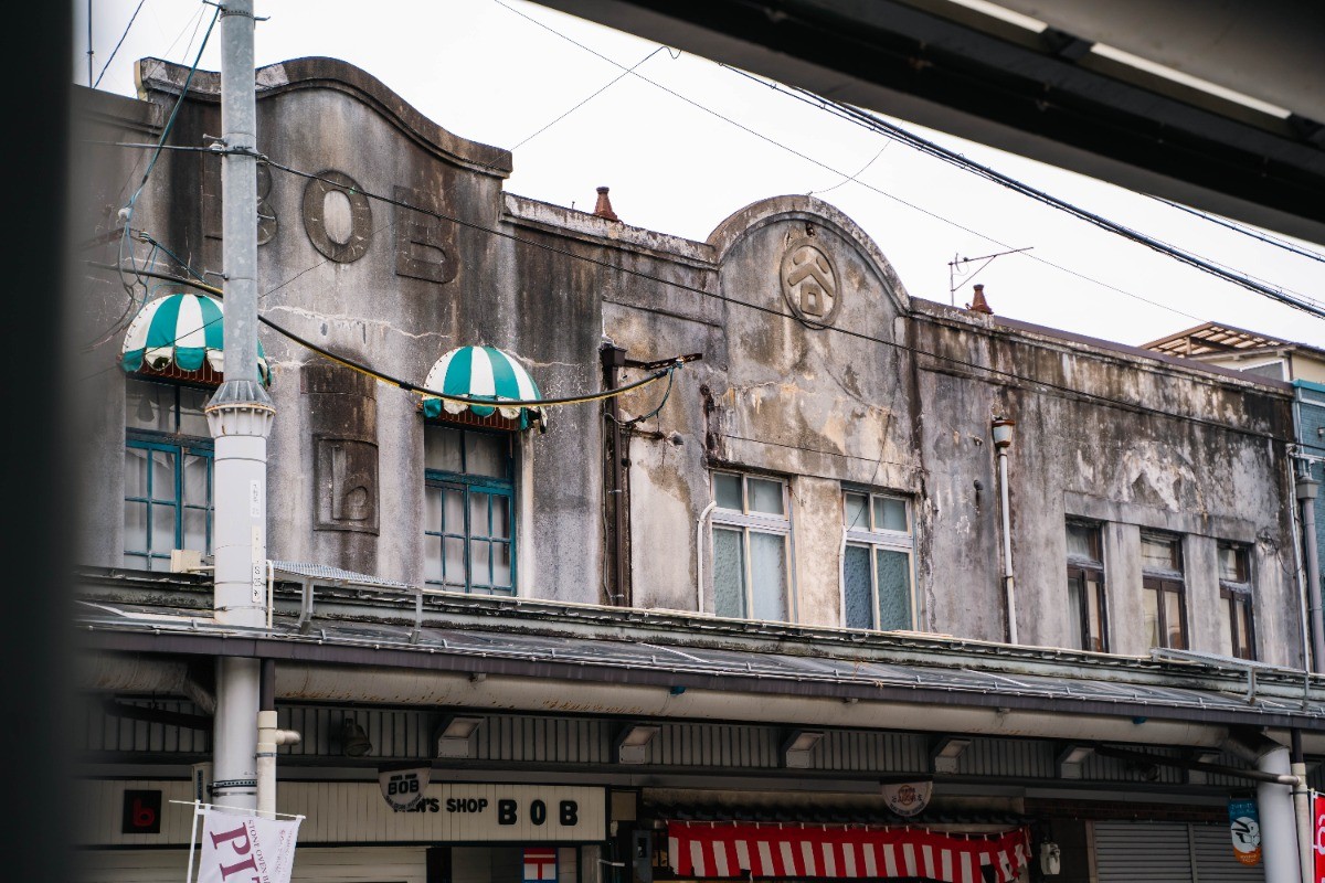 アール・デコ様式の和洋折衷建築が点在する、レトロな商店街が広がります。