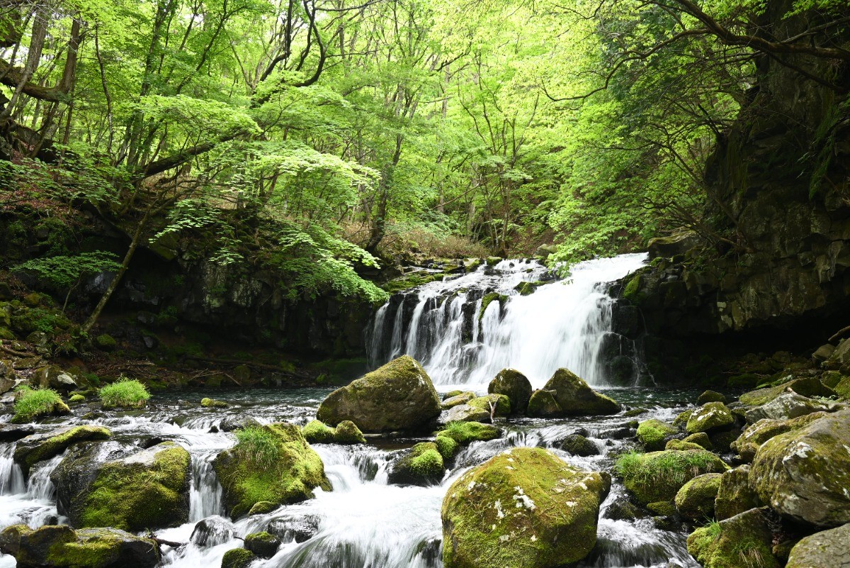 新緑の蓼科大滝 水源が豊富な蓼科では滝めぐりトレッキングを楽しめる