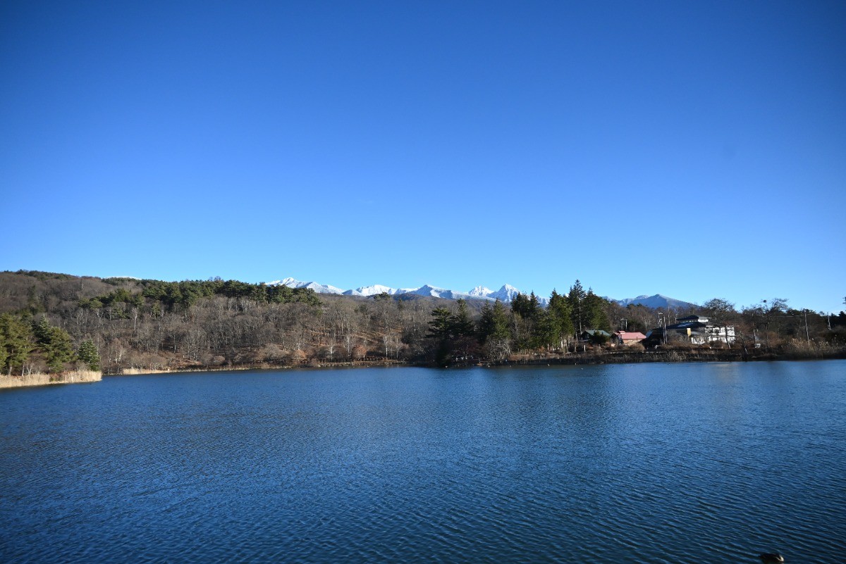 12月の蓼科湖 奥には八ヶ岳連峰が広がる