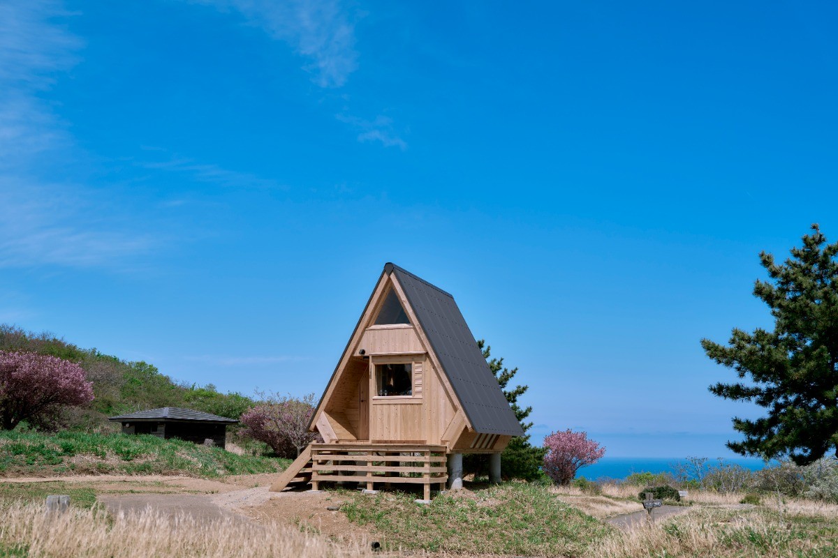 「Nutshell」は、寝る場所と食べる場所のみを備えたシンプルなキャビンタイプの建物です。