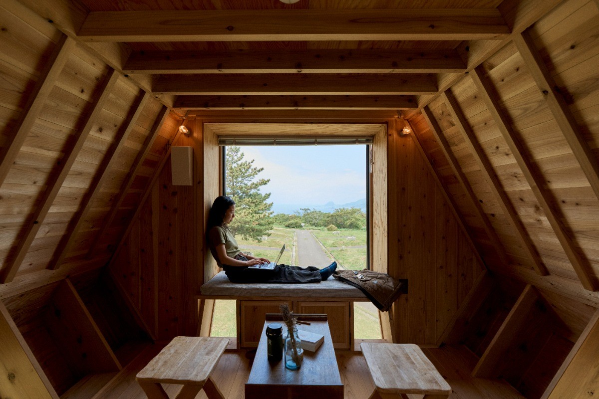 Nutshellの設備はベッド、テーブル、簡易のキッチンのみと最小限となっております。室内はコンパクトな設えで、ロフトにベッドルームがあります。ご自身のキャンプギアやアイテムを持ち込んでさまざま工夫しながら楽しむ方法もおすすめです。