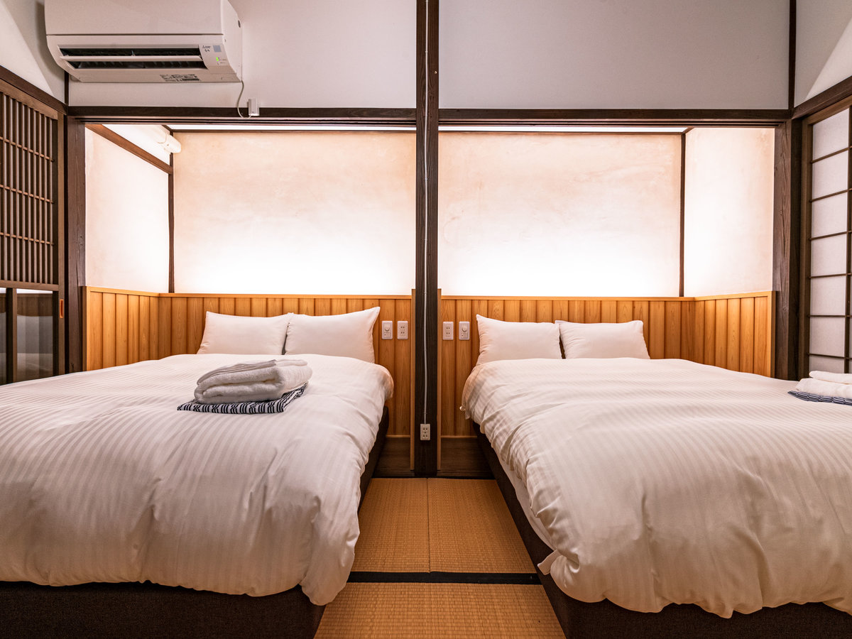室内には自炊も楽しめるキッチンとダイニングスペースを備え、暮らすように滞在できる設え。ゆったりと身体を預けられるベッドスペースが、心ほどけるひとときを演出します。