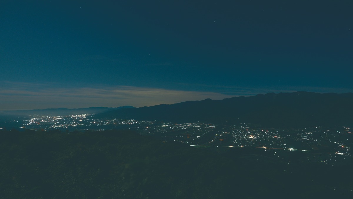 KINO陣馬形山から徒歩1分、山頂展望台から眺める伊那谷の夜景
