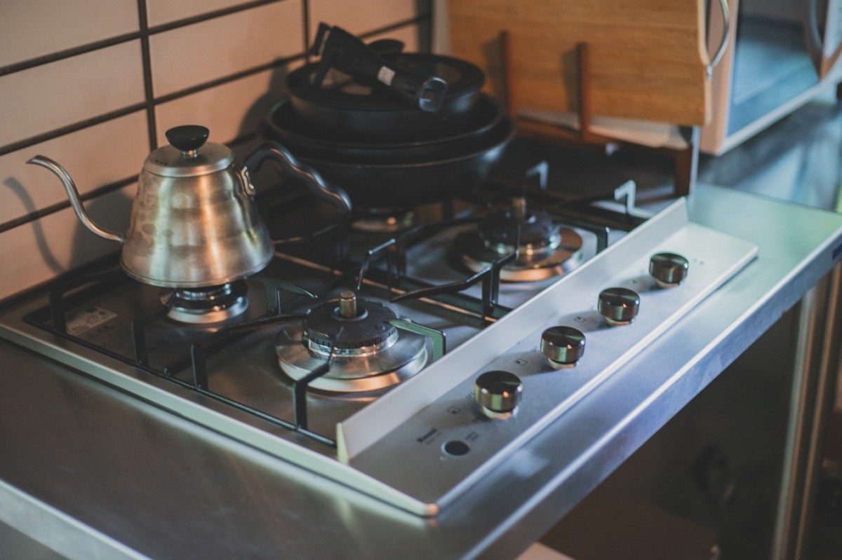 ・4口コンロのキッチンで自炊OK(電子レンジ、炊飯器5.5合、鍋等あり)