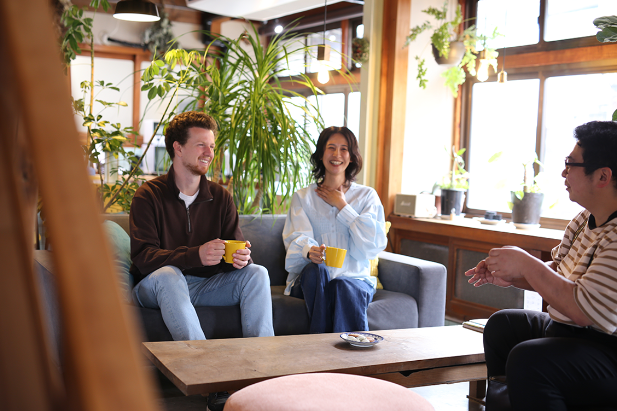 チェックインしたら、1階のラウンジスペースでほかのゲストや地域の人との交流を。