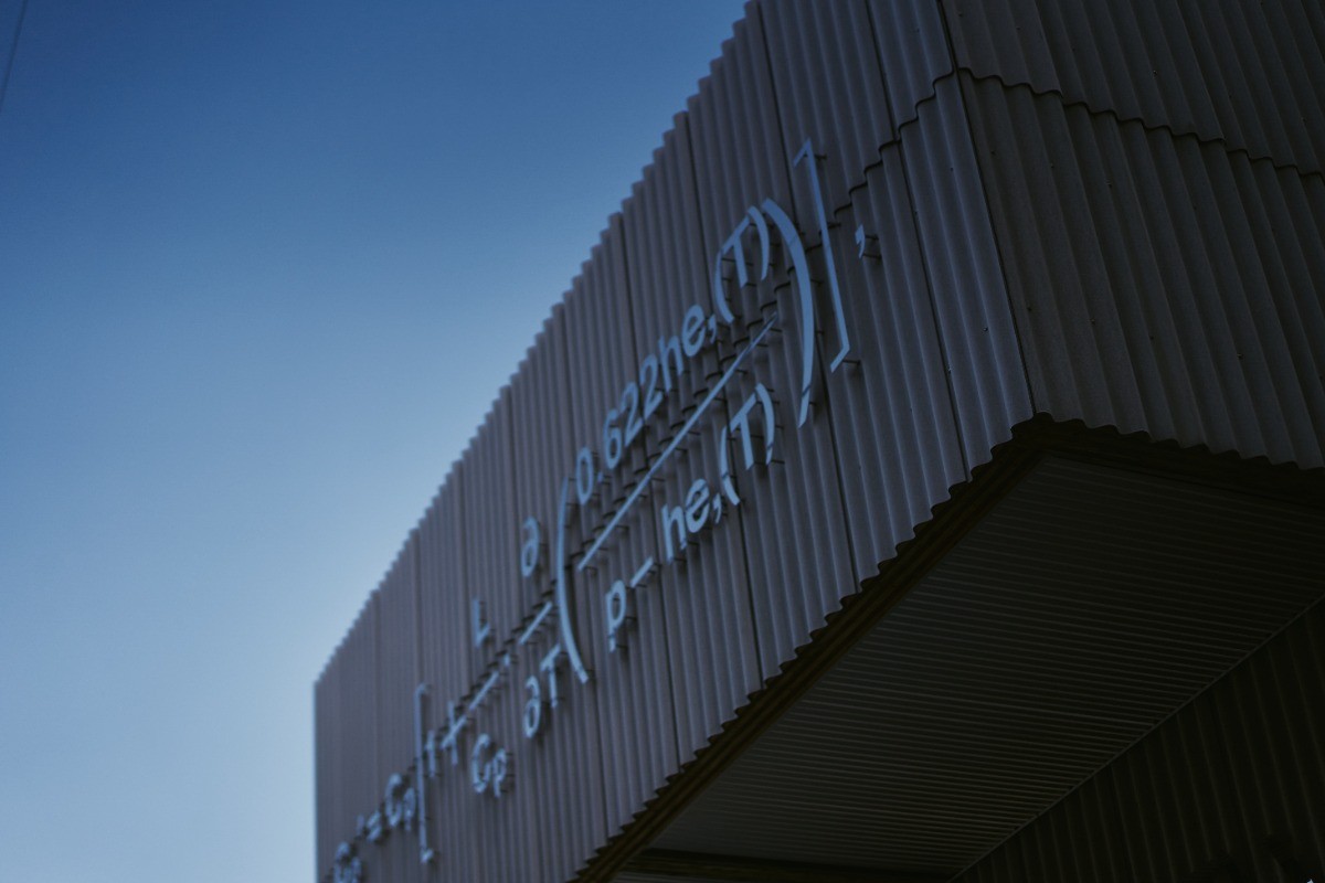 真鍋の考えを反映するかのように、建物はシンプルであると同時に複雑でもあります。ファサードの方程式は数学という国境の無い、普遍的な言語を用いています。