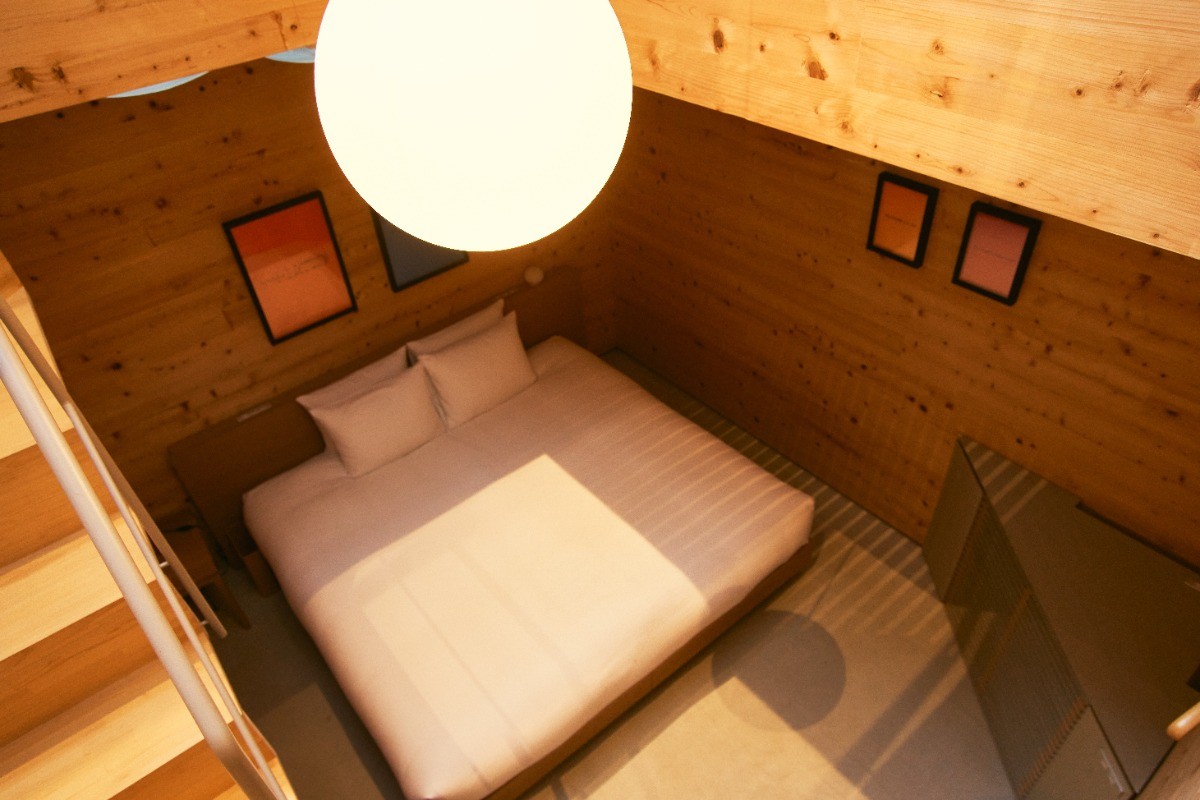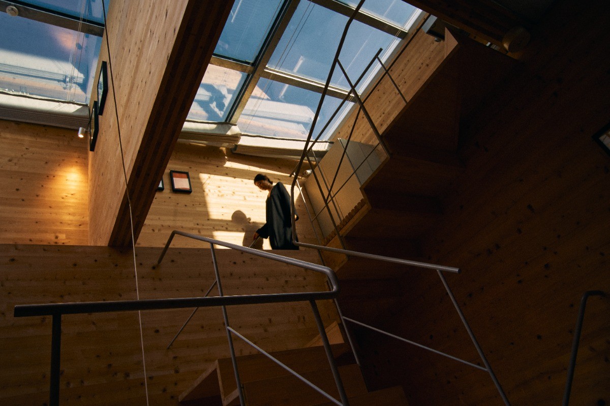 具体的には岡山名産の巨大な集成材であるCLTを田の字に組んだフレームを用意する。これをズラしながら三段積むことで、立体的で複雑な経路網が折り畳まれた「迷いの空間体」を生み出しています。