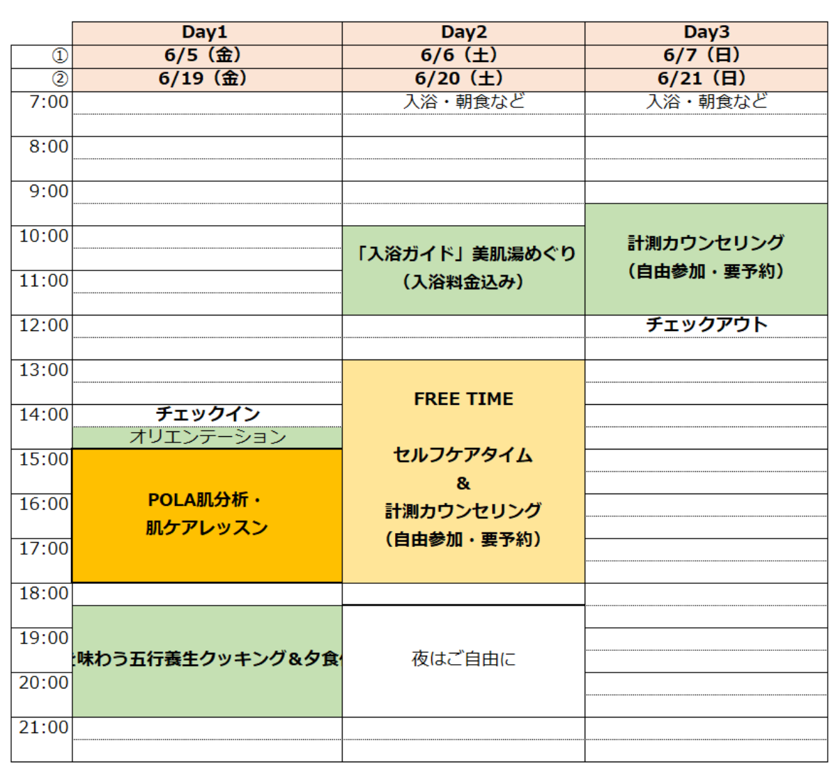 ②6月19日(金)14:00集合~21日(日) 12:00頃解散
