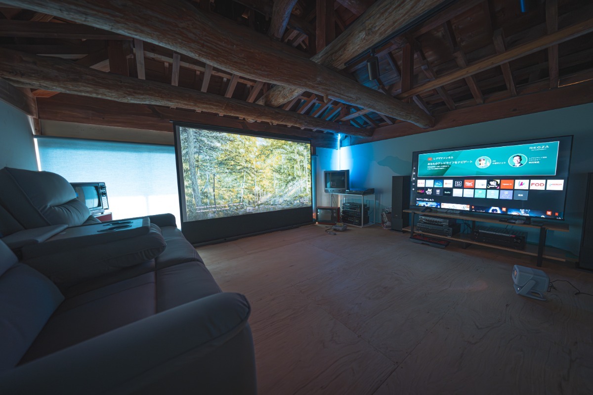 2階に65インチTV、大型スクリーン+プロジェクター、