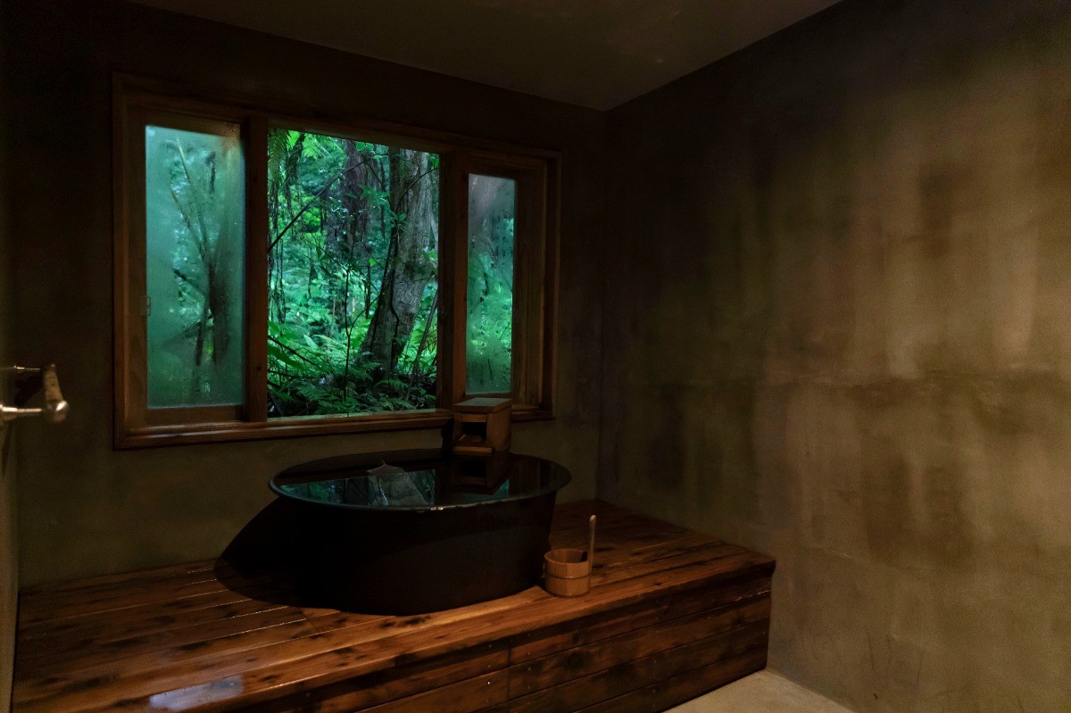 水風呂の先に広がっているのは、深く鮮やかなやんばるの森です 。ととのったあと、ただ椅子に身を預けて森を感じる時間 。鳥の声や風の音を聴きながら、ゆっくりと体を休めていく 。運が良ければ、天然記念物のアカヒゲやヤンバルクイナが、あなたの静かな時間に顔を出してくれるかもしれません 。