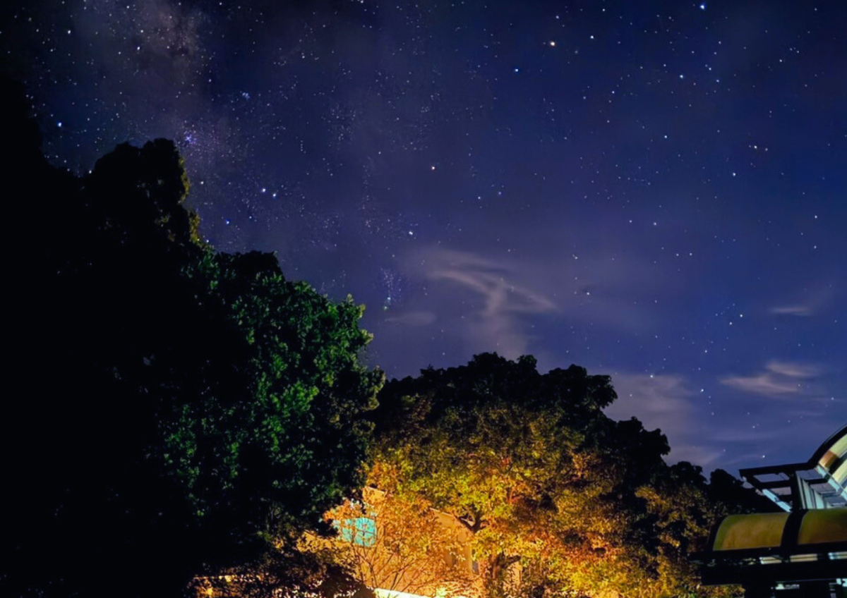サウナを終え、心地よい疲労感とともに宿へと戻る道。日が沈み、空が深い藍色に染まる頃、そこには静寂に包まれた「BUNAGAYA」の夜が待っています 。 火照った体を夜風にあずけ、施設内のハンモックに身を委ねて揺られてみる。視線を上げれば、そこにあるのは遮るもののない、やんばるの満天の星空です 。 静寂の中で星々の瞬きを眺めていると、自分自身が夜の森に溶けていくような感覚に包まれます。都会の灯りから遠く離れたこの場所だからこそ出会える、宇宙とつながるような「ととのい」の続きを、眠りにつくその瞬間までじっくりと味わってください。
