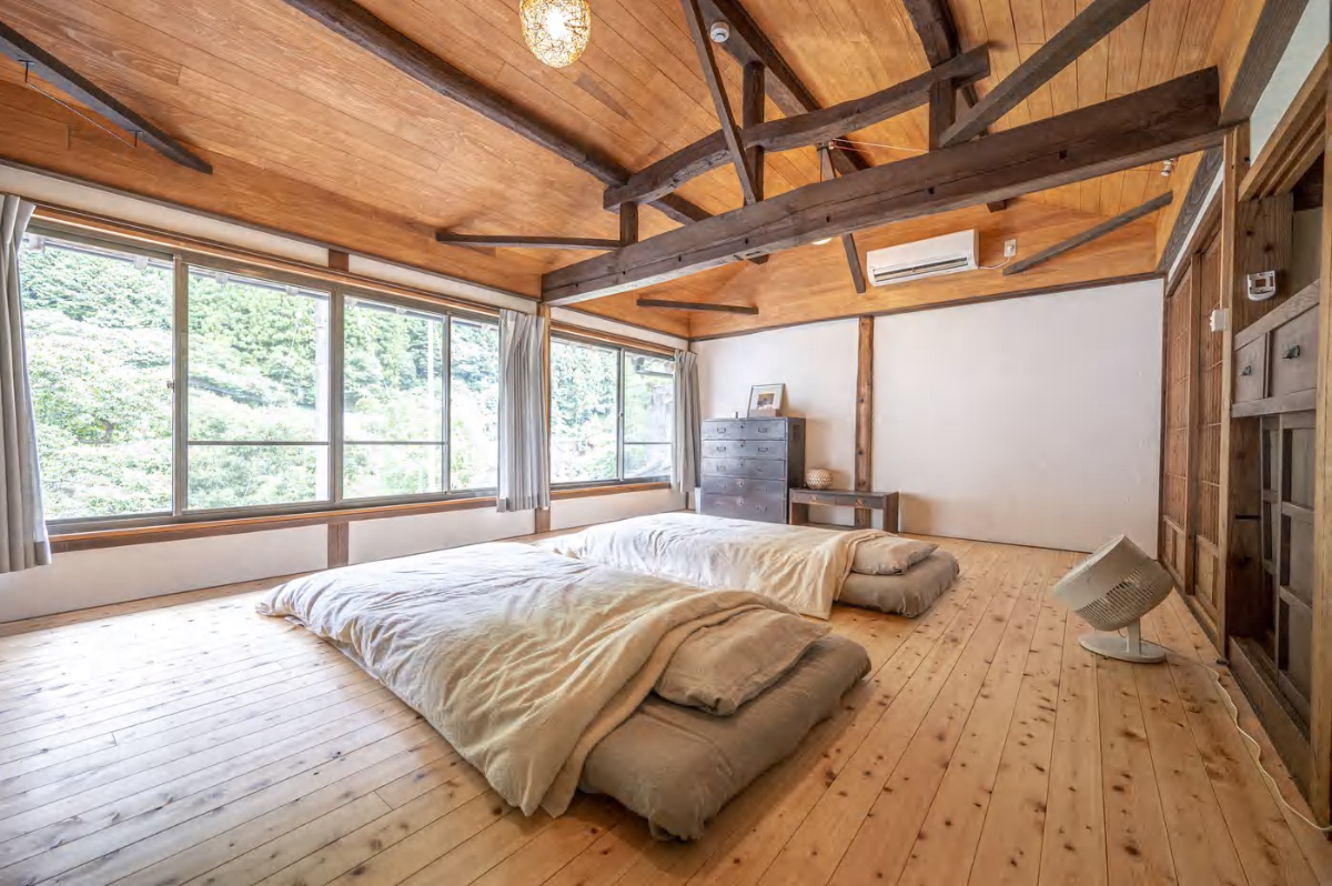 大人用のお布団でご利用いただけます。 添い寝のお子様は人数に含まれません。 急な階段の2階が寝室となりますので、ご了承ください。