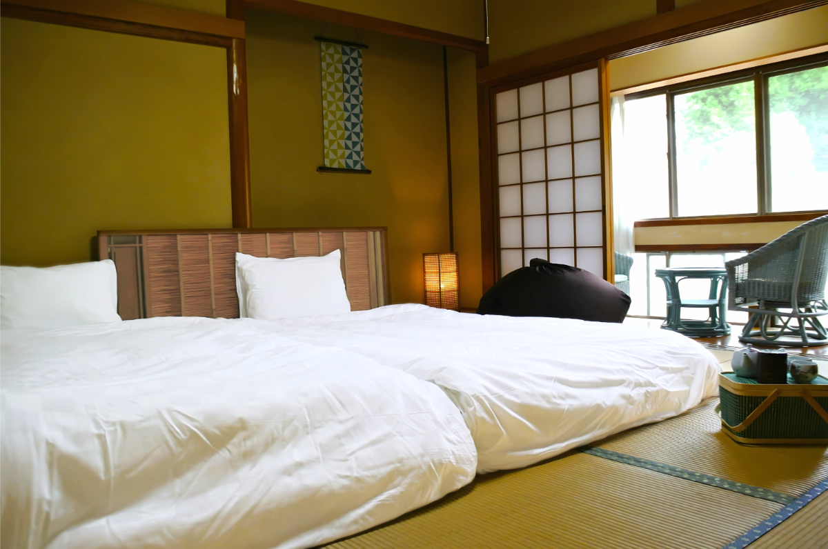 湯から上がったあとは、マットレスベッドを備えた客室でひと休み。