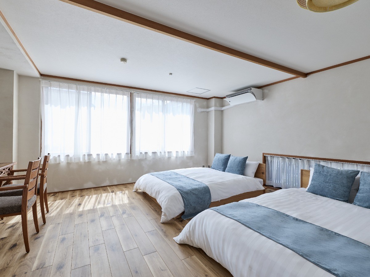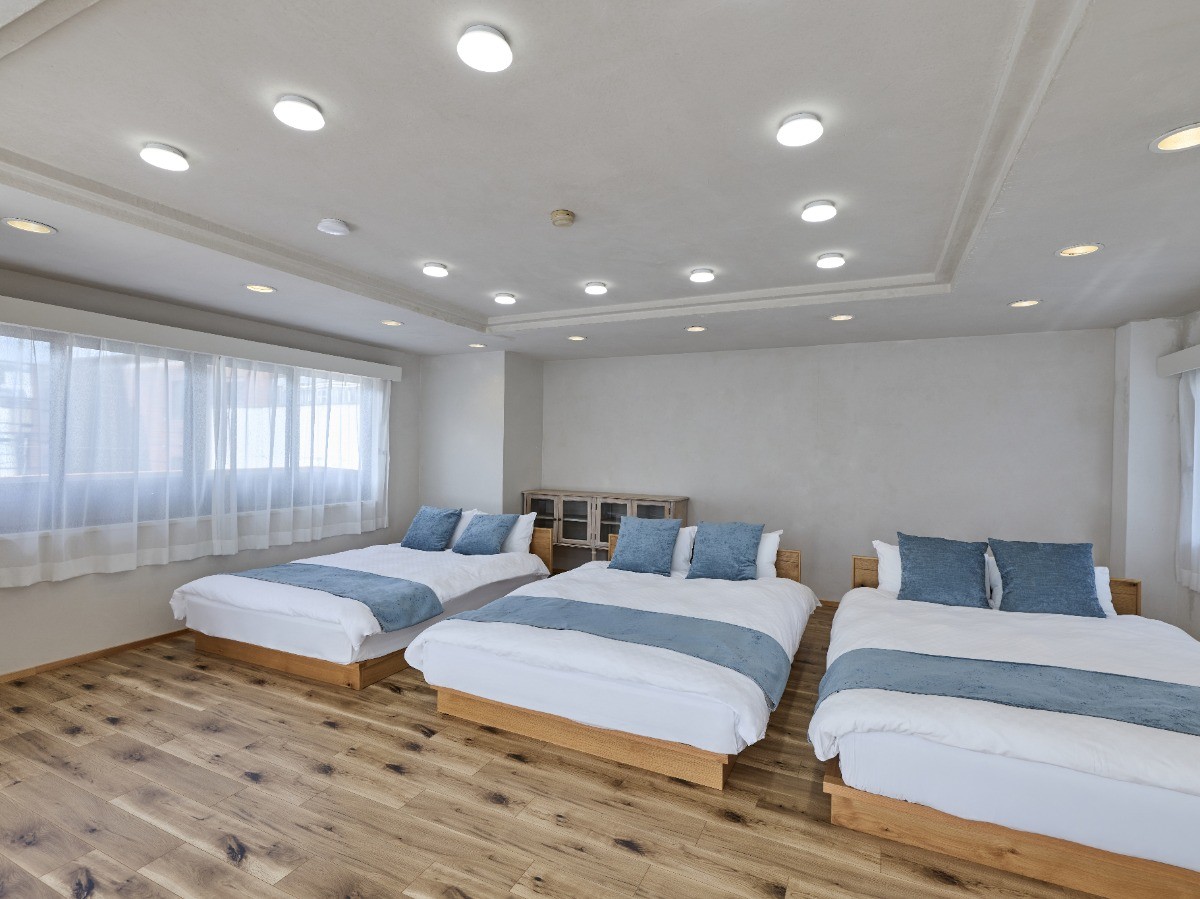 寝室は2部屋あり、ゆったり過ごせるダブルベッドが計5台完備