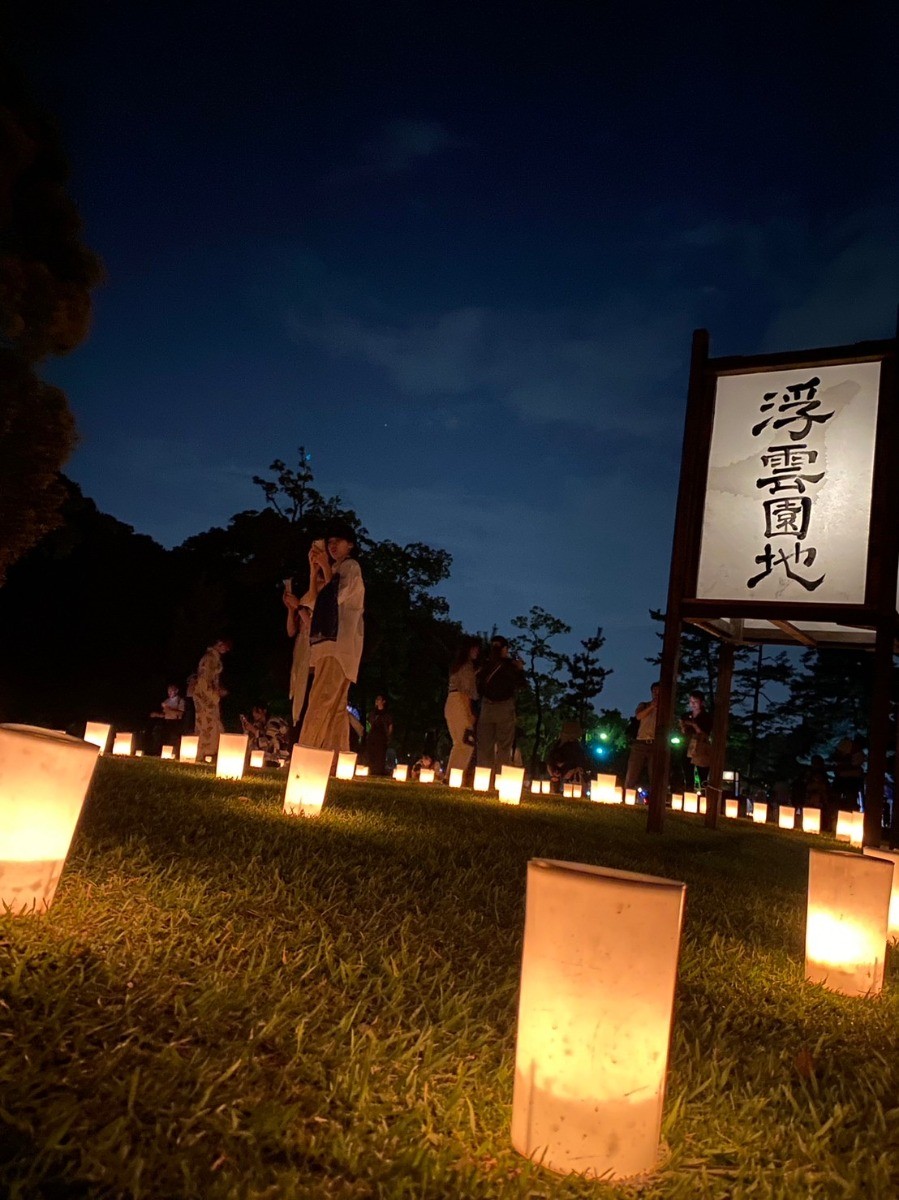 会場を歩くと、足元から広がる無数の灯りと、闇に浮かぶ