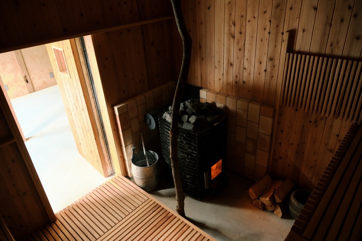 サウナでは薪ストーブの心落ち着く音と、仲間との会話を。