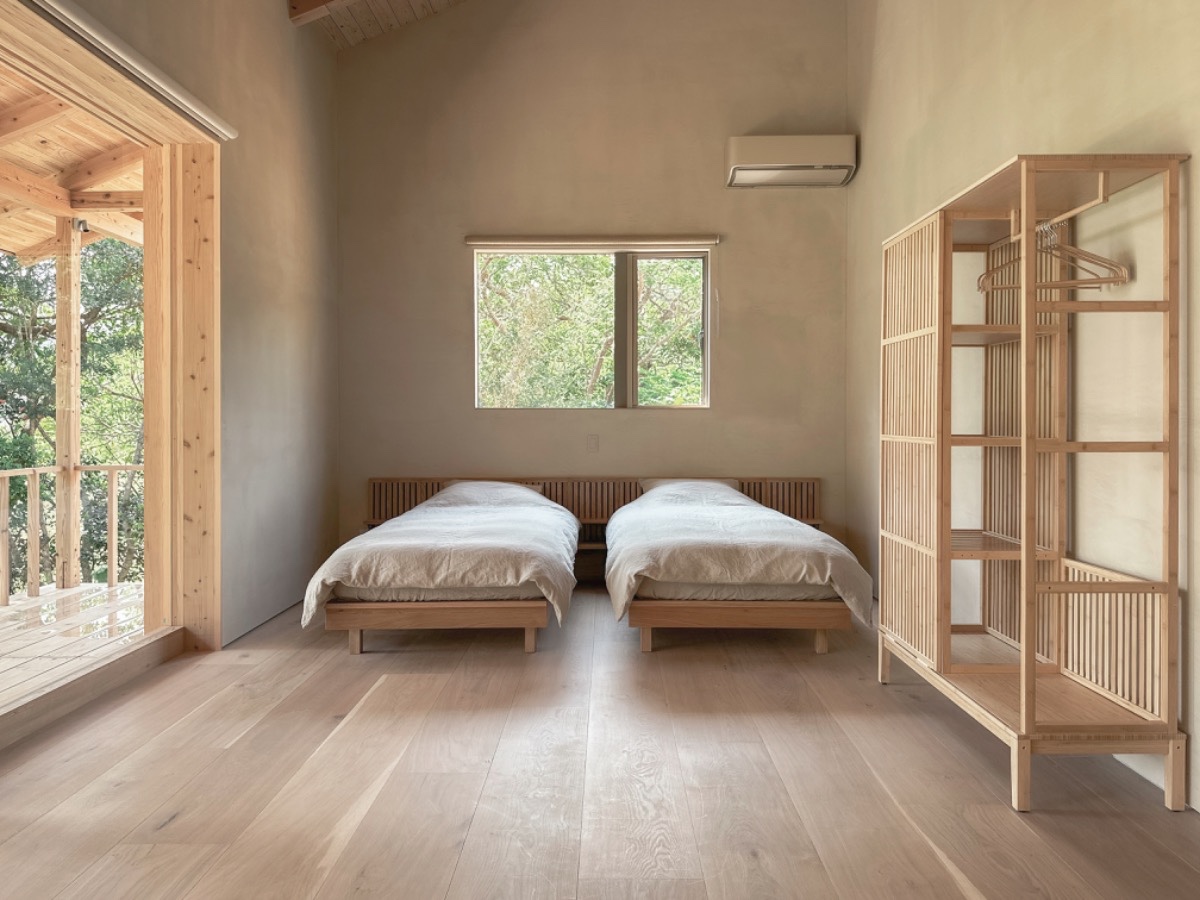 リビングとつながる開放的なベッドスペースと、三名様以上でのご滞在には、静かにこもれる個室もご用意しています。