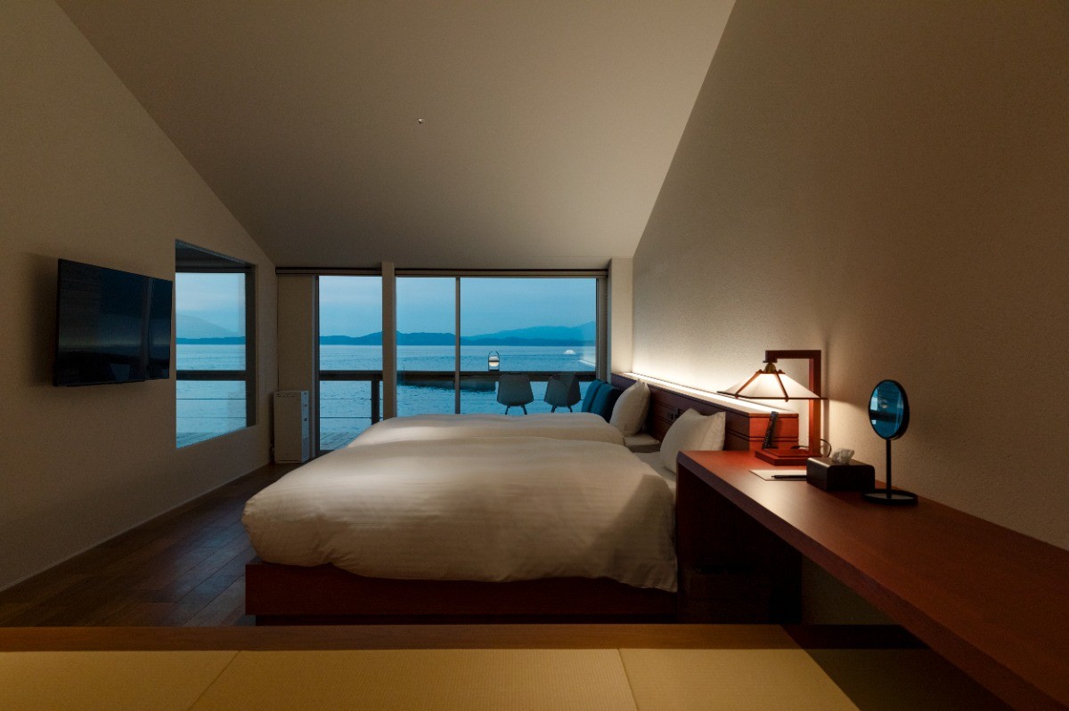 橘湾を目の前に望む、「海から」のオーシャンスイート。
