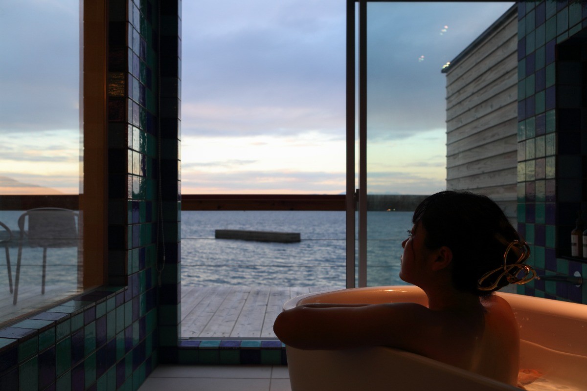 時間とともに移ろう海の表情を、客室にいながらお楽しみいただけます。建物は、かつてジャガイモの選果場として使われていた場所をリノベーションしたもの。余計な装飾を施さず、海と向き合うためのシンプルで落ち着いた空間に仕上げています。