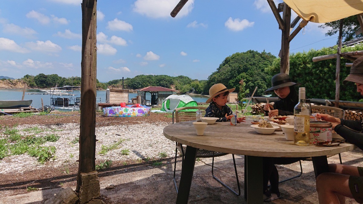 釣りいかだ、水道、トイレ、焚火台、テントエリアがこざいます。また体験料金に含まれている備品は、「軍手、釣り竿、しかけ、包丁、まな板、飯盒、鍋」になります。