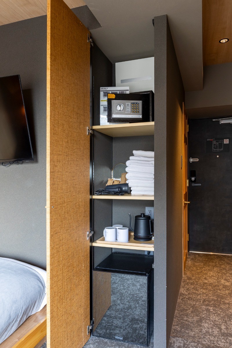 タオル類、パジャマ、バスアメニティ、ヘアドライヤー、電気ケトルなどをご用意しております。