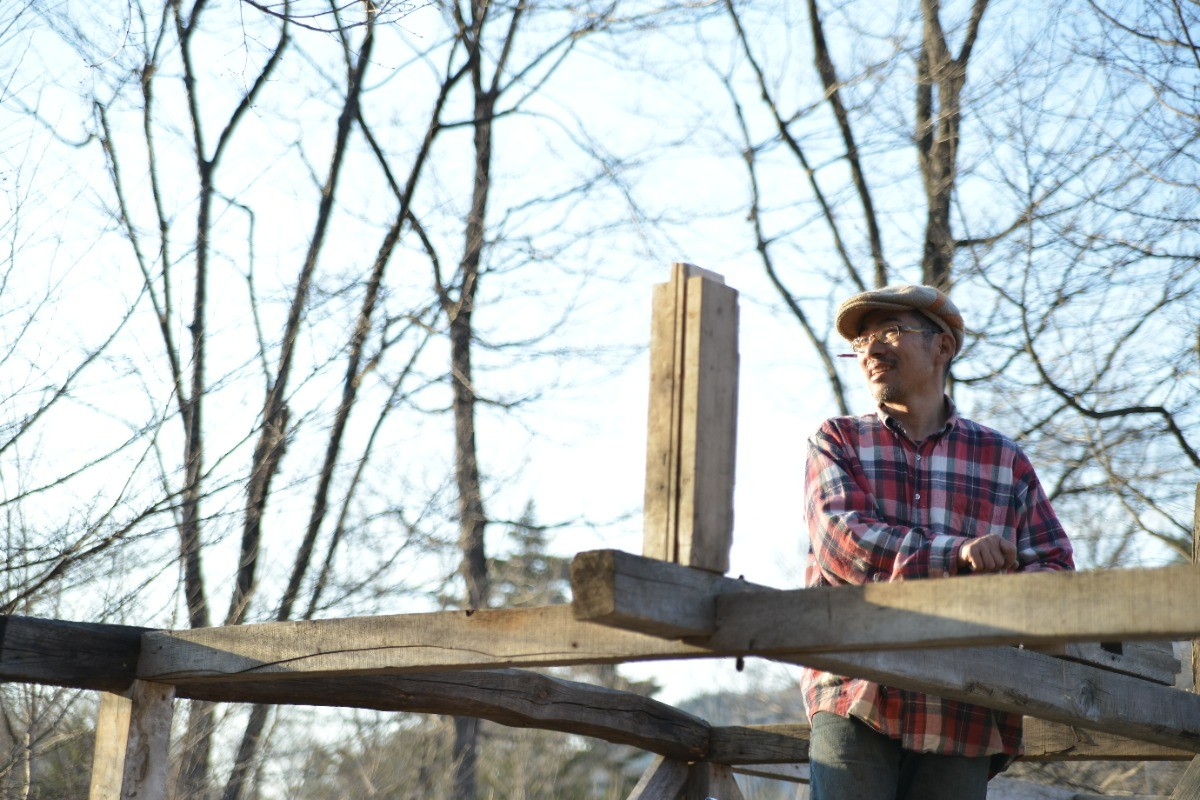 自ら古民家解体にも出かけ、60~100年前の柱や梁を手加工して再利用