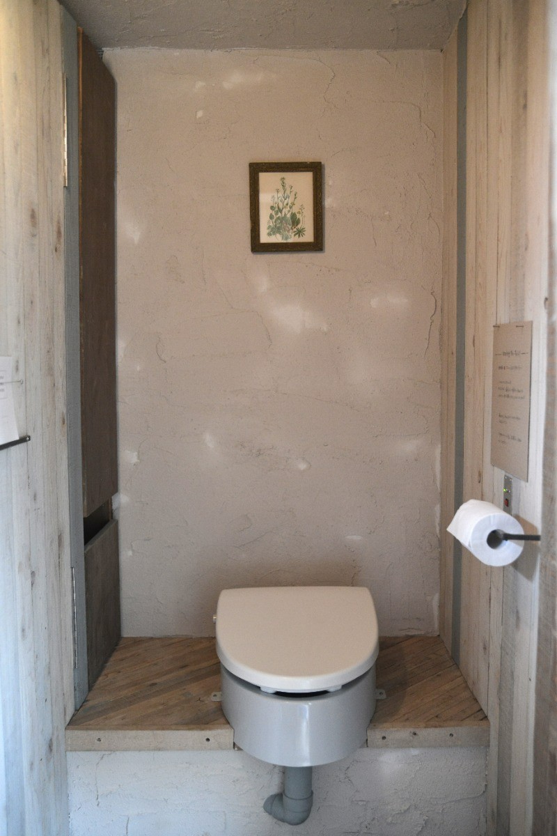 当宿では下水道設備に頼らず、森の土壌を汚さないことを最優先に、バイオトイレを採用しています。 室内とは別の建屋にある当宿のトイレは下水道設備に頼らず森の土壌を汚さないことを最優先にバイオトイレを採用しています。 汚水を外へ排出せず良質なバクテリア(微生物)の働きによって自然の力で分解・処理する仕組みのです。 水洗式ではありませんが、デザイン性にも配慮された設備で、匂いはほとんどなく、衛生的に管理されています。 いわゆる汲み取り式とは異なります。 近いとはいえいったん外に出てのご利用となる為、ご不便をおかけ致しますがこの森の循環を守るための選択であること、快適さの基準を自然に合わせていることをご理解いただけますと幸いです。