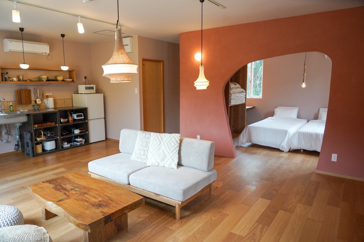 虫や小さな生き物がお部屋に入ることがございます。網戸を設置していますが、緑に囲まれた環境のため完全に侵入を防ぐことはできません。虫に関するクレームには対応できませんのであらかじめご了承の上でご宿泊を検討くださいませ。虫が苦手な方や気になる方はホテル等の宿泊施設をおすすめ致します。また、宿の敷地向かいにヤギが暮らしています。鳴き声が時々聞こえるかもしれません。匂いは気になりません。