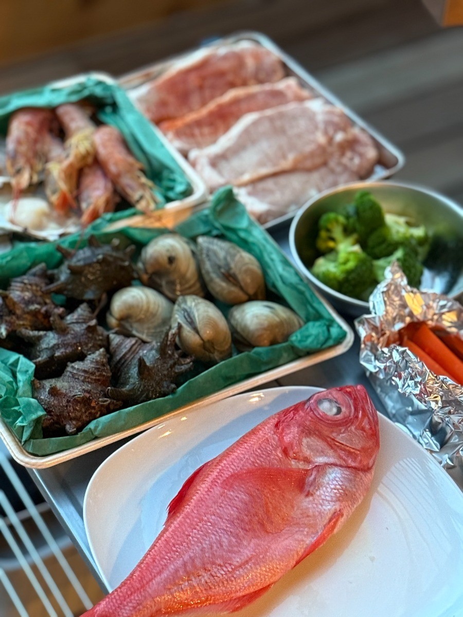 地元の鮮魚店「魚将」さんから届く豪華な海鮮BBQや、自分で仕上げる金目鯛のアクアパッツァ。