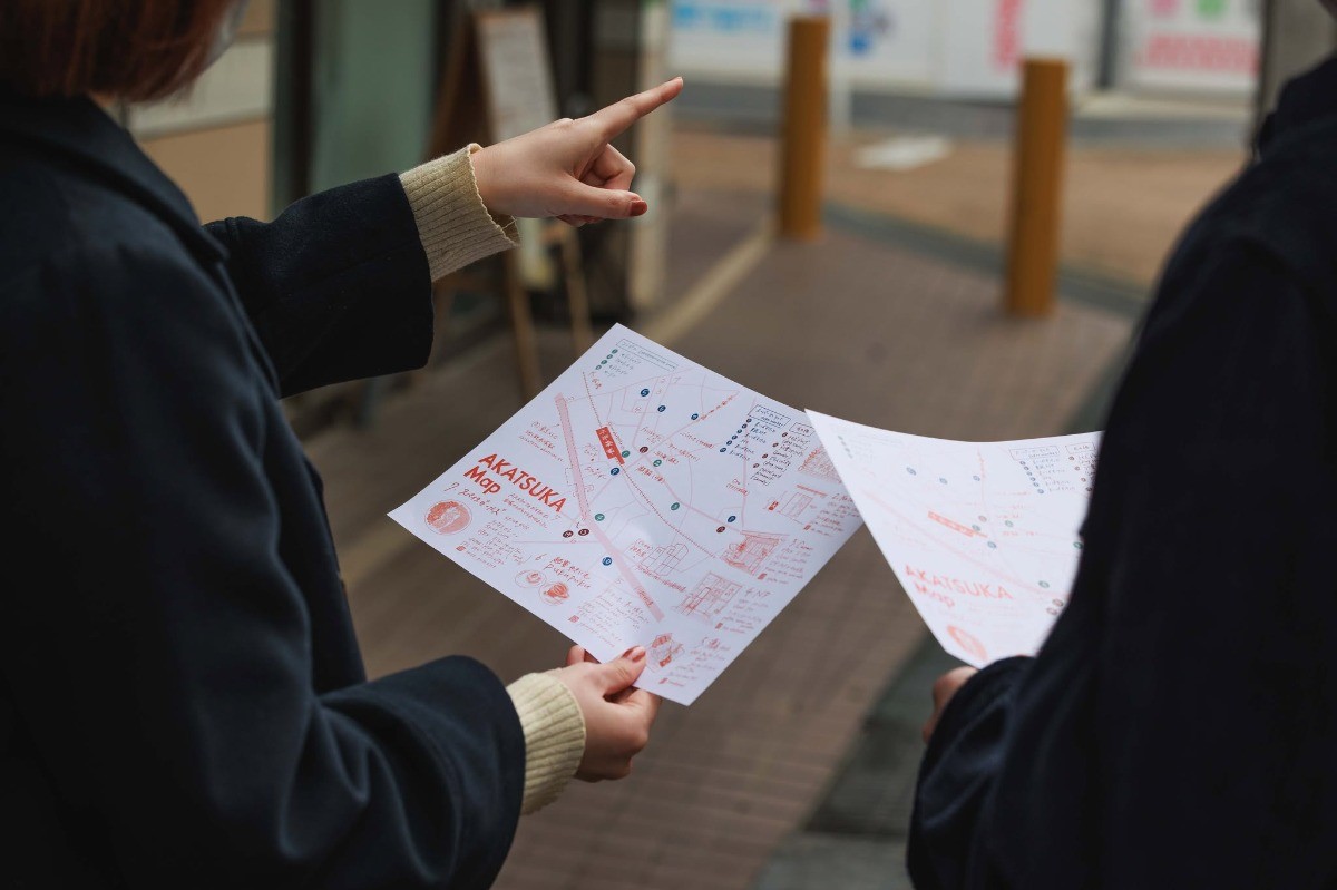 「赤塚マップ」(弊社作成)を片手に街を散策